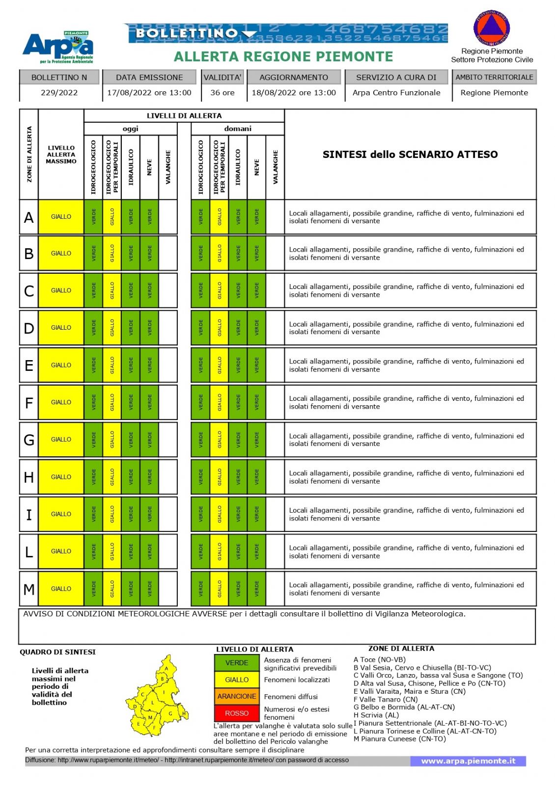 IN ALLEGATO IL BOLLETTINO DI ALLERTA METEO
