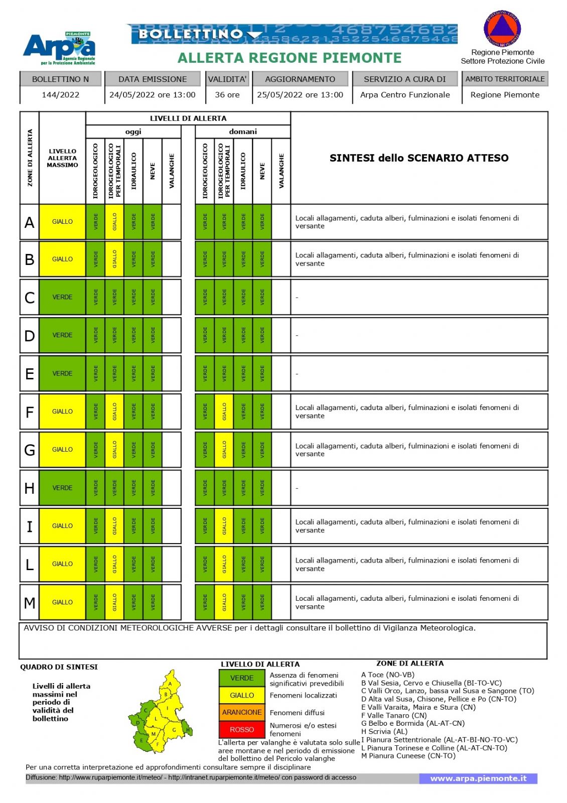 IN ALLEGATO BOLLETTINO DI ALLERTA METEO AGGIORNATO AL 24.05.2022