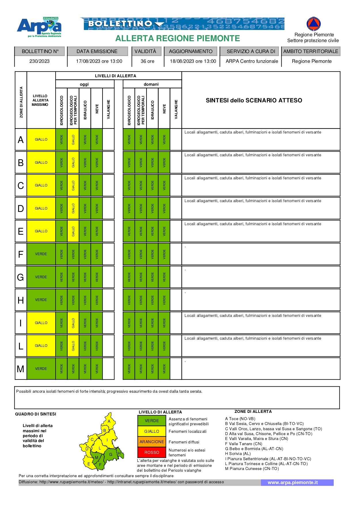 BOLLETTINO ALLERTA METEO AGGIORNATO AL 17.08.2023