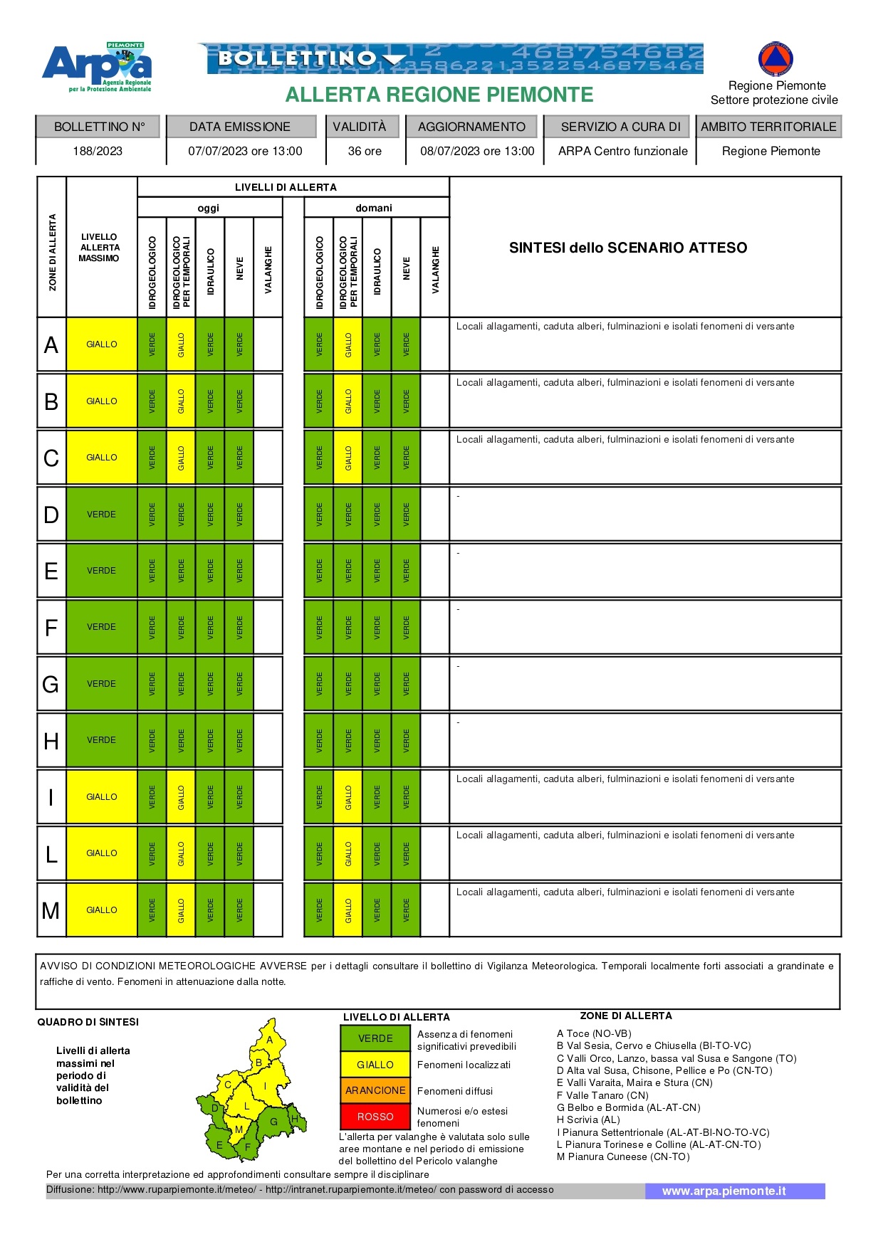 BOLLETTINO ALLERTA METEO DEL 07.07.2023