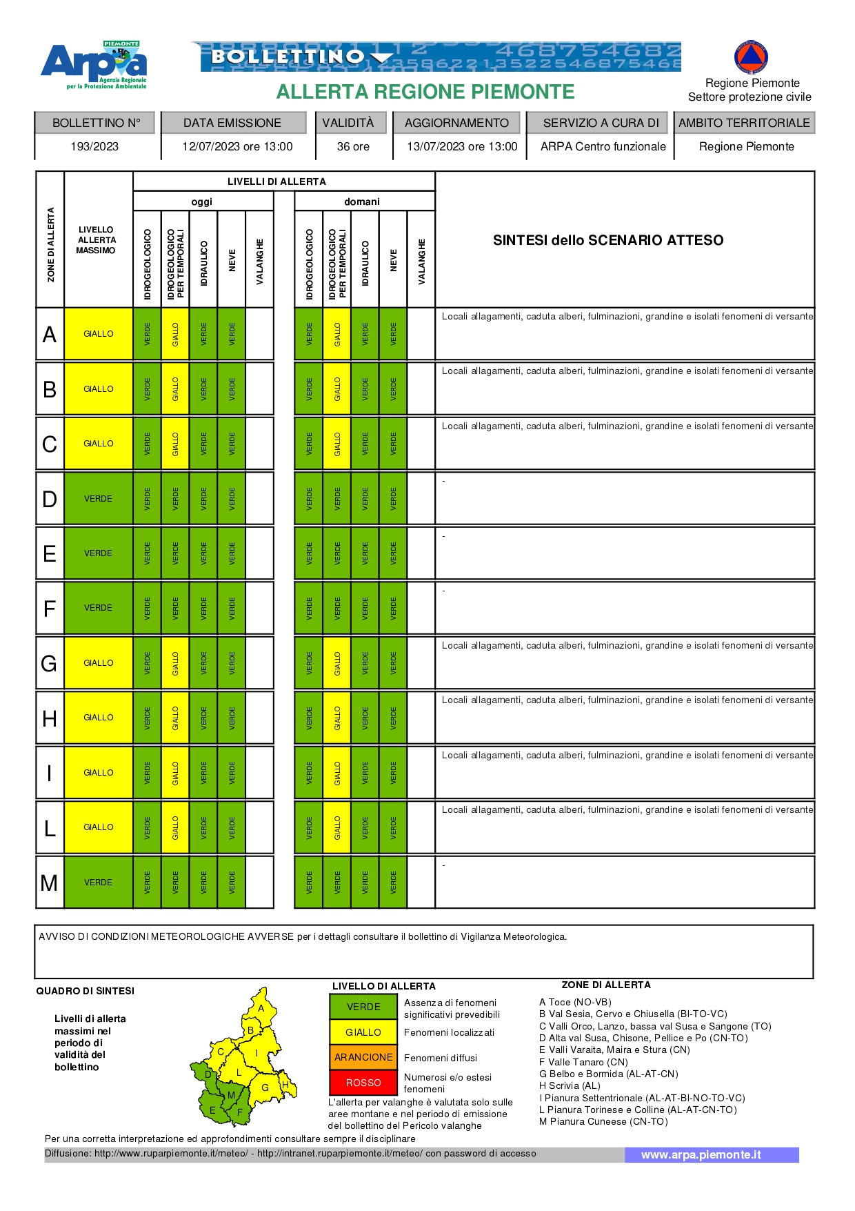 IN ALLEGATO BOLLETTINO ALLERTA METEO AGGIORNATO AL 12.07.2023